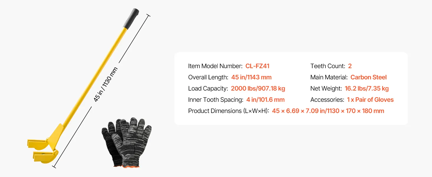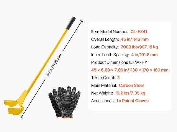 Fits More Pallets: This pallet breaker tool features a 45 in overall length with 4 in tooth spacing. You use it right out of the box—no installation—so operation stays simple and quick