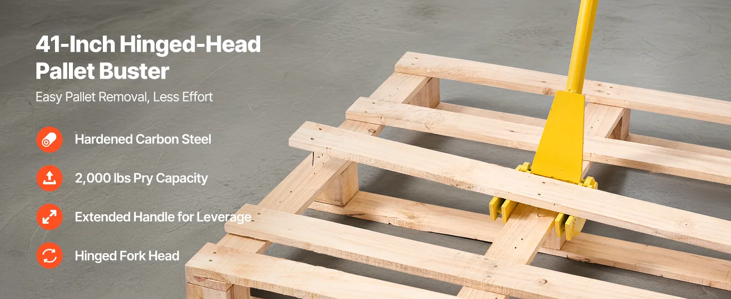 Ergo Leverage: This extended 41 in handle of our pallet wrecker supports an upright stance. You reduce bending, ease back strain, and keep long sessions more comfortable and efficient