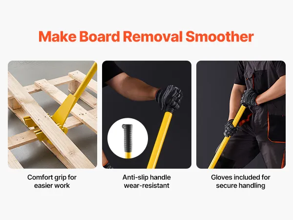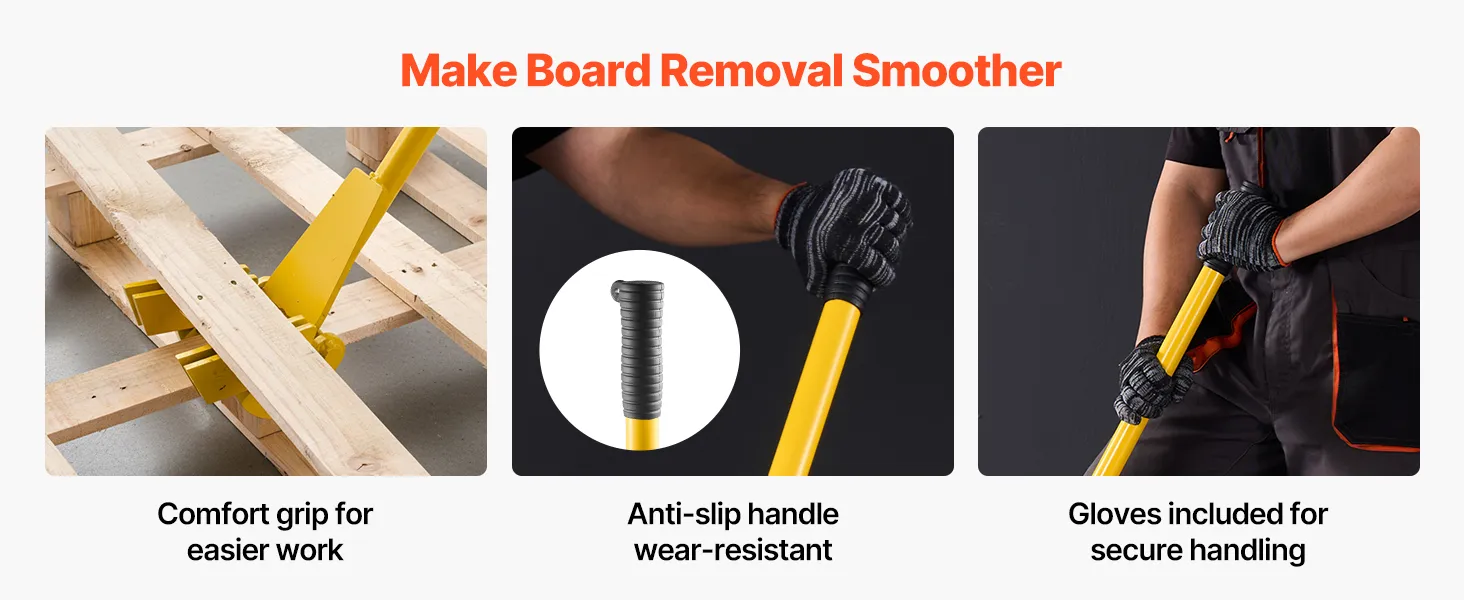 This cushioned, non-slip handle of the pallet breaker helps cut hand fatigue and improve control. The included gloves add simple protection, so every pry feels smoother.