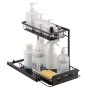 Space Saving: This under sink slide out cabinet shelf efficiently accommodates various items, fitting easily into everyday areas like bathrooms and kitchens, transforming chaos into order. The two-tier design not only increases storage capacity but also saves space.
