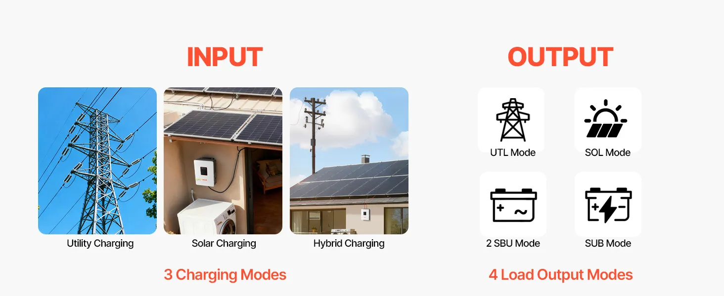 99% Conversion Efficiency: Equipped with an advanced MPPT solar charge controller, this hybrid solar power inverter captures and converts more solar energy into usable power, significantly increasing your daily energy yield