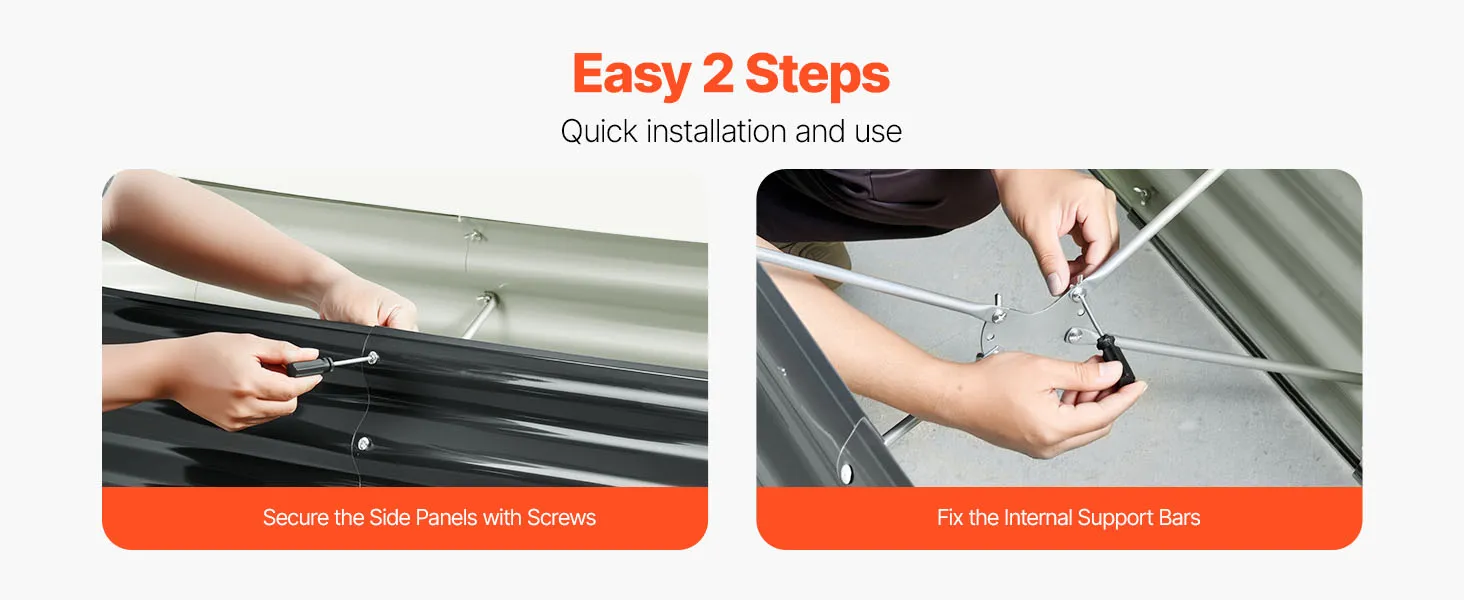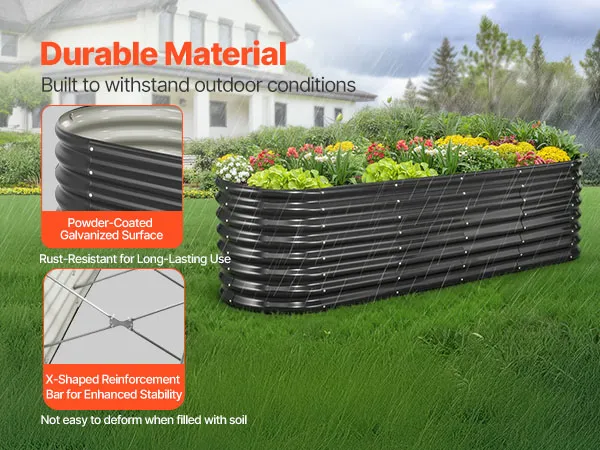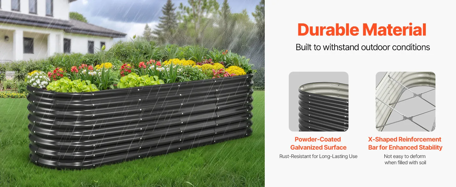 Sturdy and Reliable: Made from 0.4 mm rust-proof galvanized powder-coated panels, this metal raised garden bed is sturdy and built to last. The 12 internal X-shaped bars add stability for long-term outdoor use