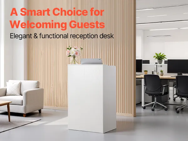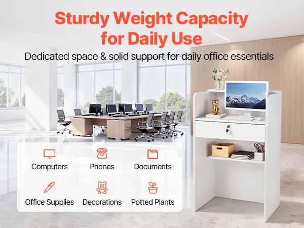Our receptionist desk adopts a white, minimalist design, which blends with any decor. Its compact footprint fits office reception areas, home offices, salons, cafés, retail shops, and more.