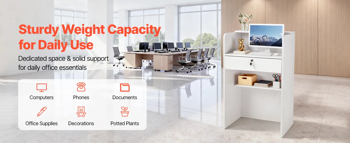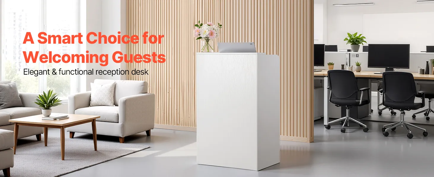 Easy Assembly & Cleaning: Our receptionist desk comes with all hardware and clear instructions for quick setup. The particleboard surface wipes clean effortlessly to stay looking new. Note: Color may vary slightly due to lighting and screen differences