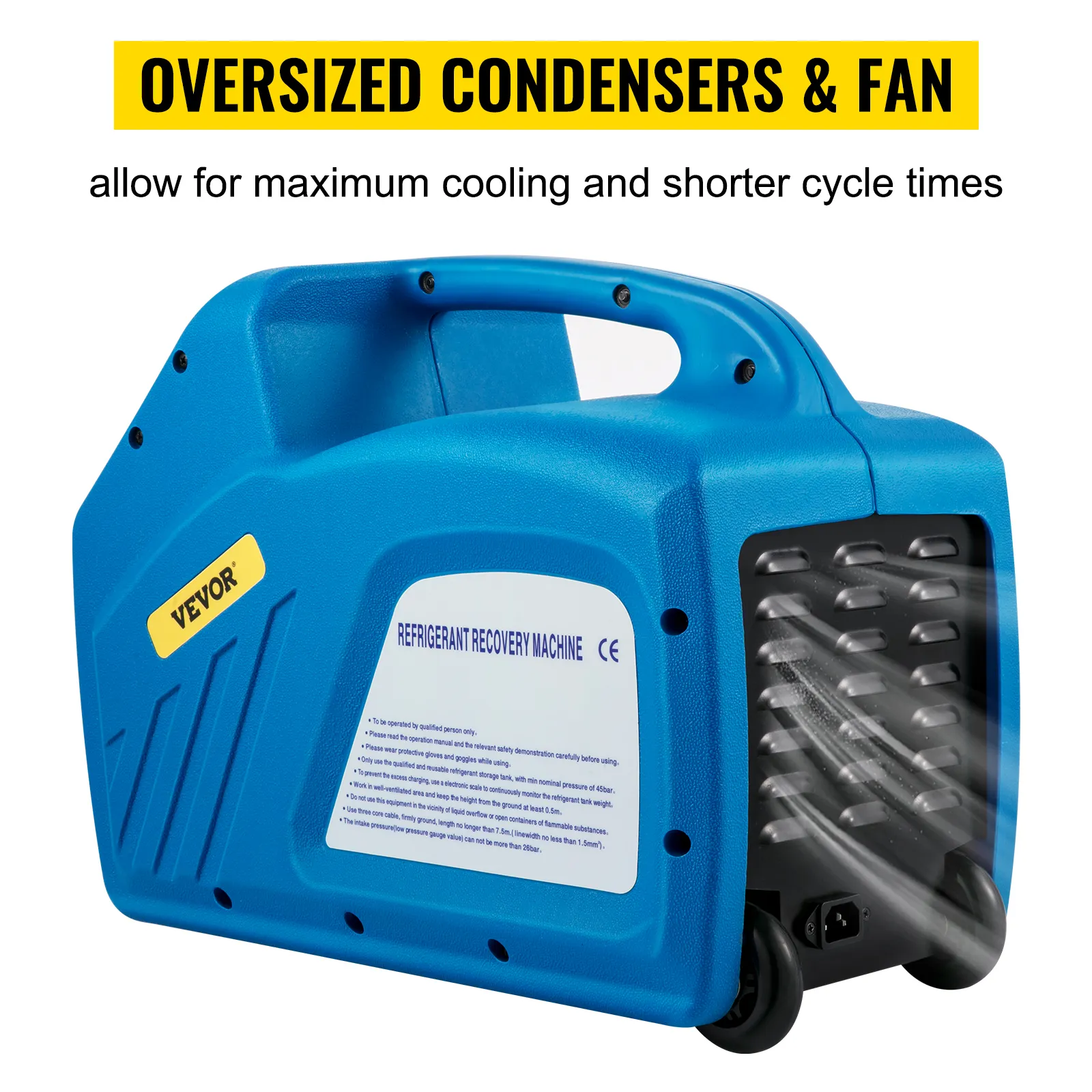 Oversized condensers and fans for larger condenser areas and larger fans allow maximum cooling and shorter cycle times.
