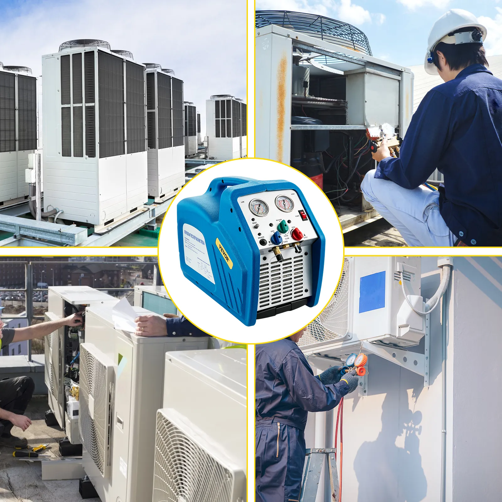 This portable refrigerant recovery is widely applicable to both residential and commercial use. It works with all common CFC, HFC, and HCFC refrigerants.