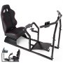 This is a high-quality racing wheel stand built with carbon steel material. The free adjustment system allows players of different sizes to use, the drivers can have a more comfortable and flexible game experience. It is equipped with a racing seat and tribble monitors stand. The wheel, shifter, monitors and pedals are NOT included.