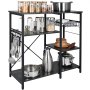 VEVOR Kitchen Baker's Rack, 5-Tier Industrial Microwave Stand with Hutch & 8 S-Shaped Hooks, Multifunctional Coffee Station Organizer with Utility Storage Shelf for Kitchen, Living Room, Dark Gray