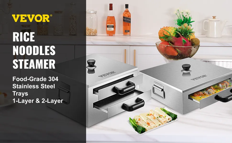 VEVOR Rice Noodles Steamer Rice Noodle Roll Maker 2-Layer Rice Roll Machine VEVOR Rice Noodles Steamer Rice Noodle Roll Maker 2-Layer Rice Roll Machine