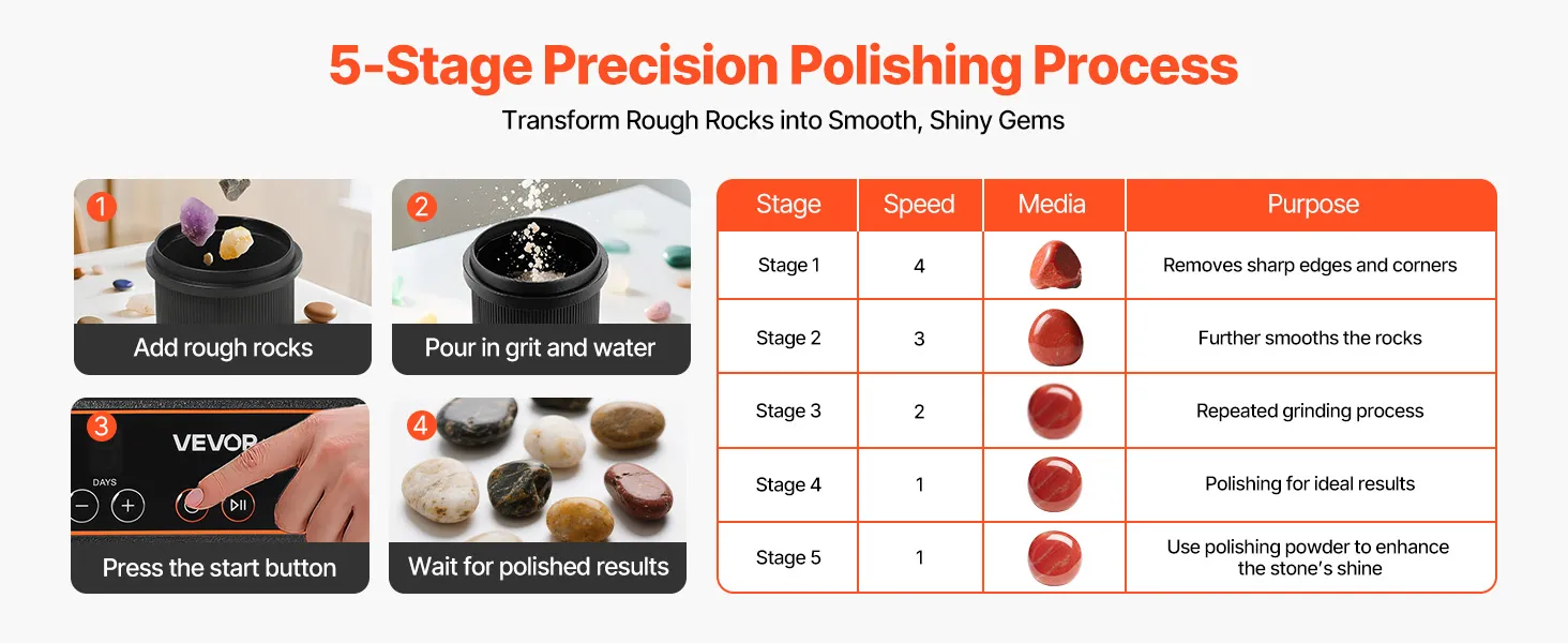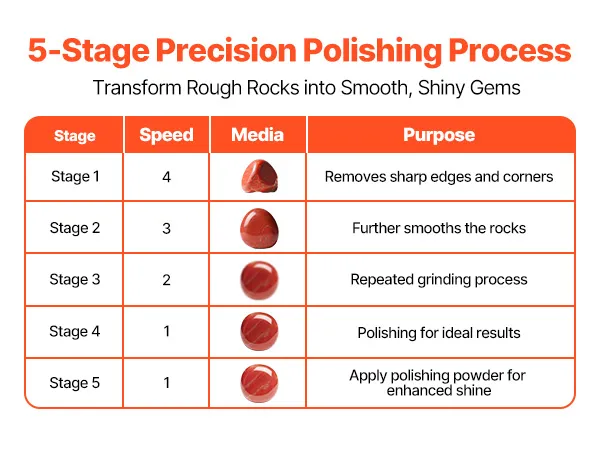 Durable Drum Design: The 1 lb load drum in this stone polishing kit uses quiet, durable rubber and a sealed design to minimize spills. It ensures steady, smooth operation for extended periods, making stone polishing at home or in professional projects efficient and convenient