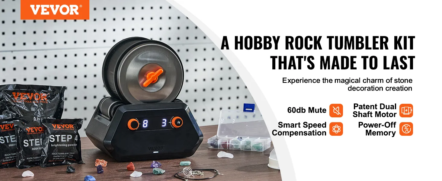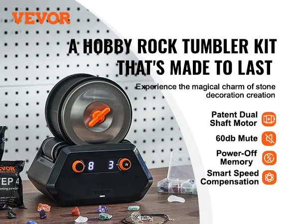 Beltless Grinding: Indulge in a luxurious stone polishing experience with the patented dual-axis motor of the VEVOR rock tumbler kit! Its 60db low noise and overload protection promise long-lasting rock polishing performance while relieving you from the wear and tear of tumbler belts and bringing you endless fun.