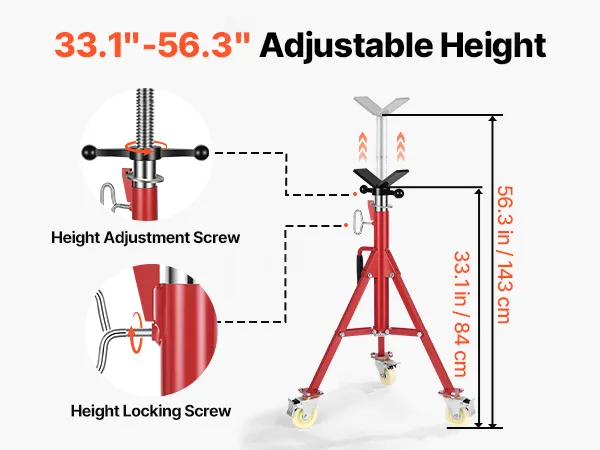 The VEVOR pipe stand offers a versatile height adjustment feature. This allows it to adjust from 28 to 52 inches. It can handle various tasks. Whether you're working with small or larger pipes, this stand can accommodate them. The range is suitable for different projects, not just pipe-related ones. Flexibility makes it an incredibly useful tool in any workshop. Adjustable height ensures you can work at the most comfortable level, reducing strain and increasing productivity. You can easily set the stand to the height you need. So, your tasks are easier and more efficient.