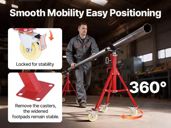 The VEVOR pipe stand features a portable design with casters. This allows easy movement across different surfaces. Whether you're working in a large workshop or a small garage doesn't matter. Moving this stand is simple. The movers make it easy to reposition the stand without lifting. They save you time and effort. The portable model also makes it easier to store. You can move it out of the way when not in use. That feature is especially useful for those who don't have much space. These casters are durable and roll smoothly. So, they ensure effortless and convenient mobility.