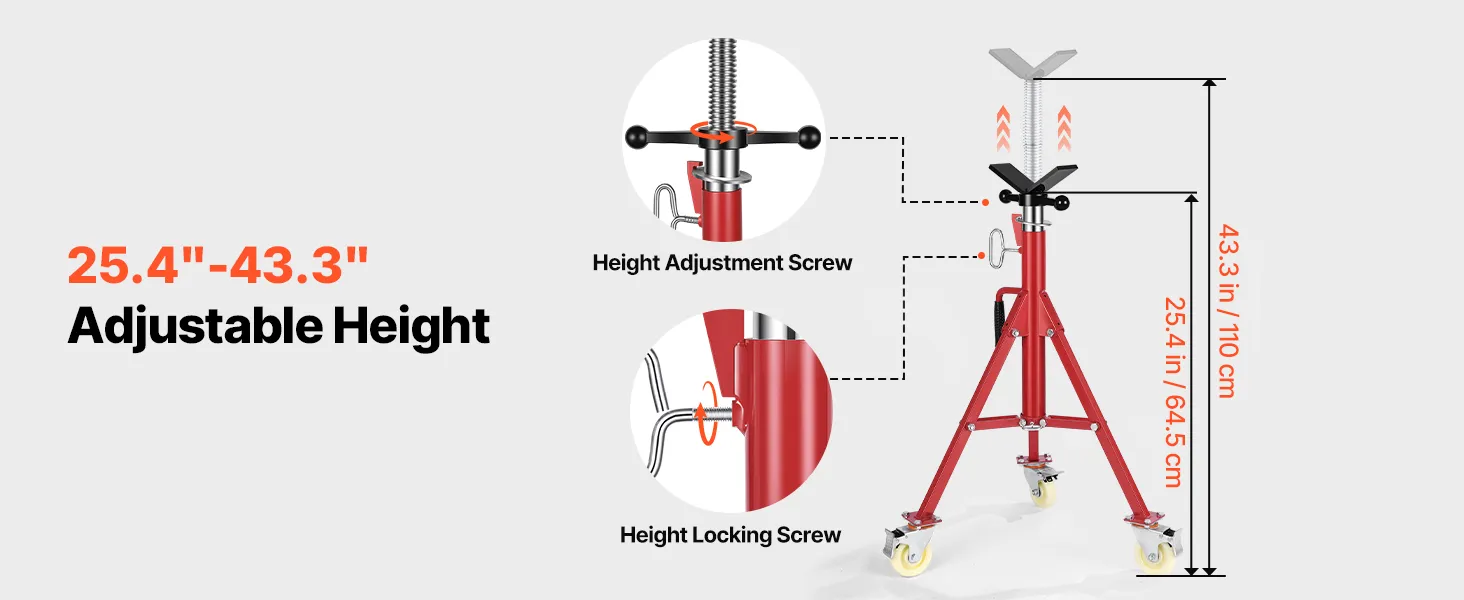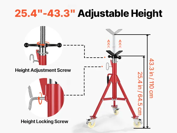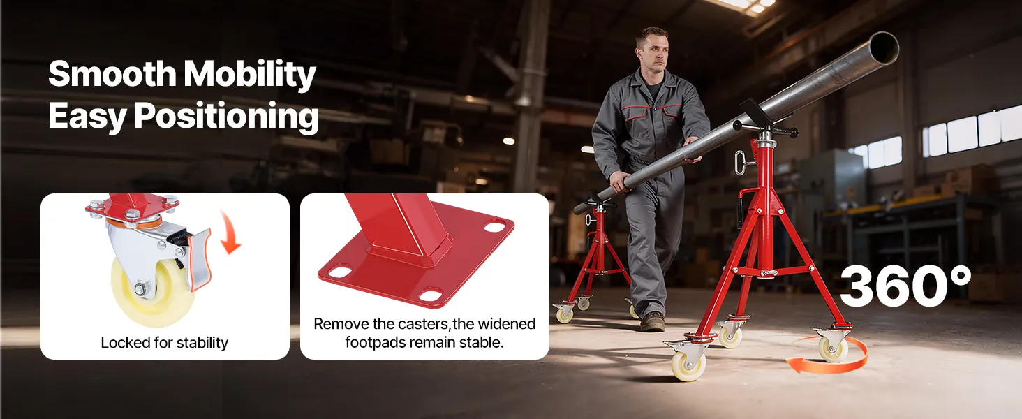 The VEVOR pipe jack stand is designed to be user-friendly. It includes built-in casters, making it easy to move around your workspace. This feature is especially useful for larger projects where you must frequently reposition the stand. The jack stands are sturdy and reliable, ensuring smooth movement. Due to this portability, it's easier to set up your workplace and complete tasks more efficiently. With a simple and intuitive mechanism, adjusting is easy, allowing you to focus on your project rather than struggling with your tools.