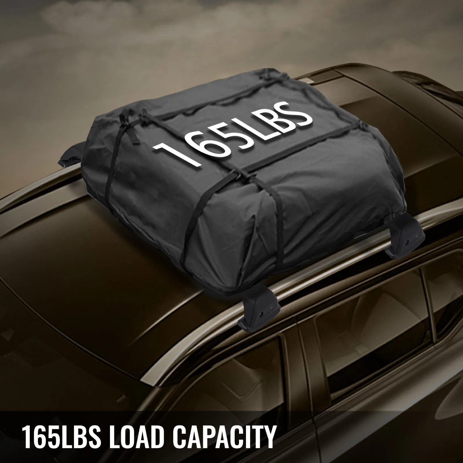 The safety support cargo weight can reach 165LBS/75KG, which will not bend or warp the structural integrity of the roof racks. Be aware of weight limitations. The maximum capacity of your roof-rack system will be dependent on the lowest-rated part of the system.