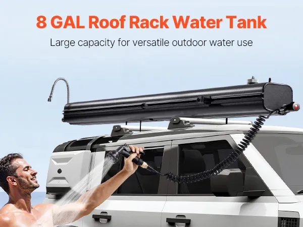 This roof rank water tank is equipped with an easy-to-read temperature sticker and faucet extension. As a result, this setup allows for hands-free outdoor showers, making it more convenient for outdoor use.