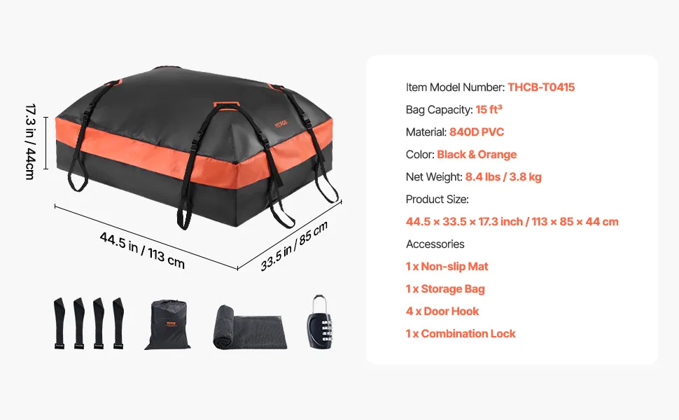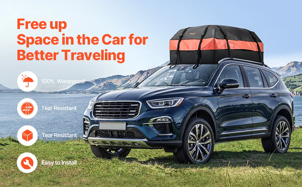 Pack more, travel further! Our 15 cubic feet car rooftop cargo carrier bag offers ample space for travel essentials. Crafted from 840D PVC waterproof material, it protects against harsh weather, while the combination lock keeps your luggage safe on the go — perfect for road trip and adventure.
