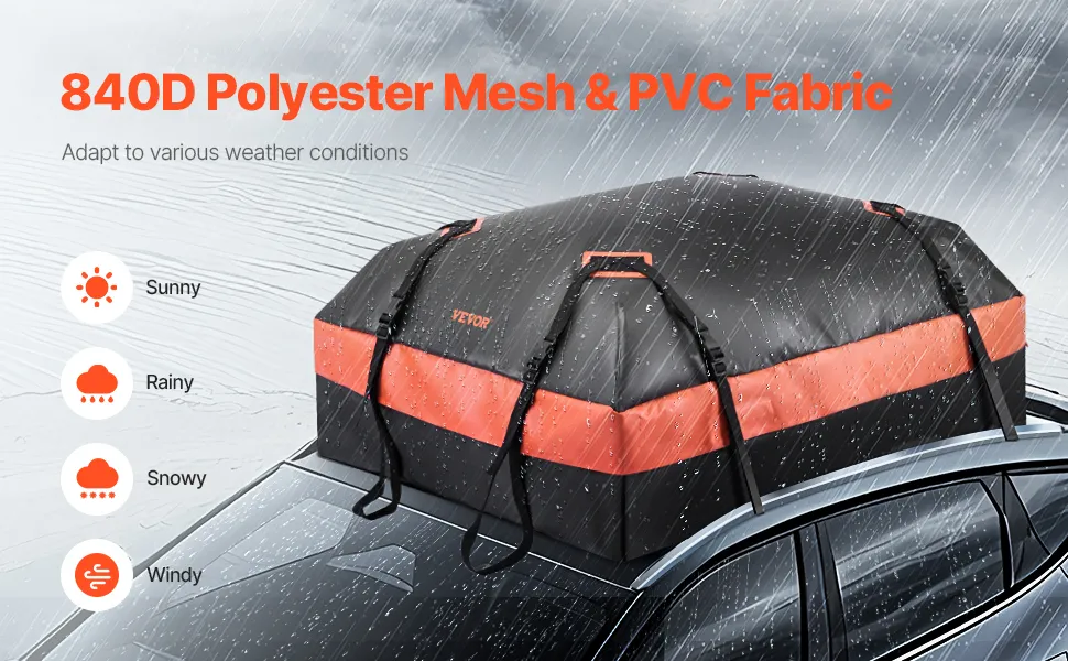 All-Weather Durability: Made from heavy-duty, high-quality 840D PVC material, this rooftop cargo carrier offers excellent abrasion and tear resistance. It is designed to withstand harsh weather conditions, providing long-lasting, reliable protection for your luggage.