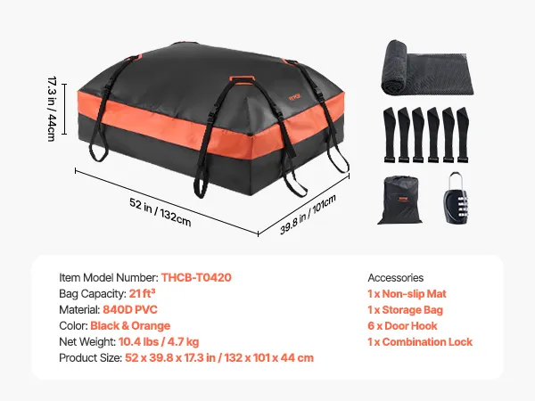Pack more, travel further! Our 21 cubic feet car rooftop cargo carrier bag offers ample space for travel essentials. Crafted from 840D PVC waterproof material, it protects against harsh weather, while the combination lock keeps your luggage safe on the go — perfect for road trip and adventure.