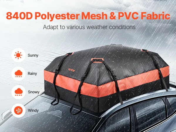 All-Weather Durability: Made from heavy-duty, high-quality 840D PVC material, this rooftop cargo carrier offers excellent abrasion and tear resistance. It is designed to withstand harsh weather conditions, providing long-lasting, reliable protection for your luggage.