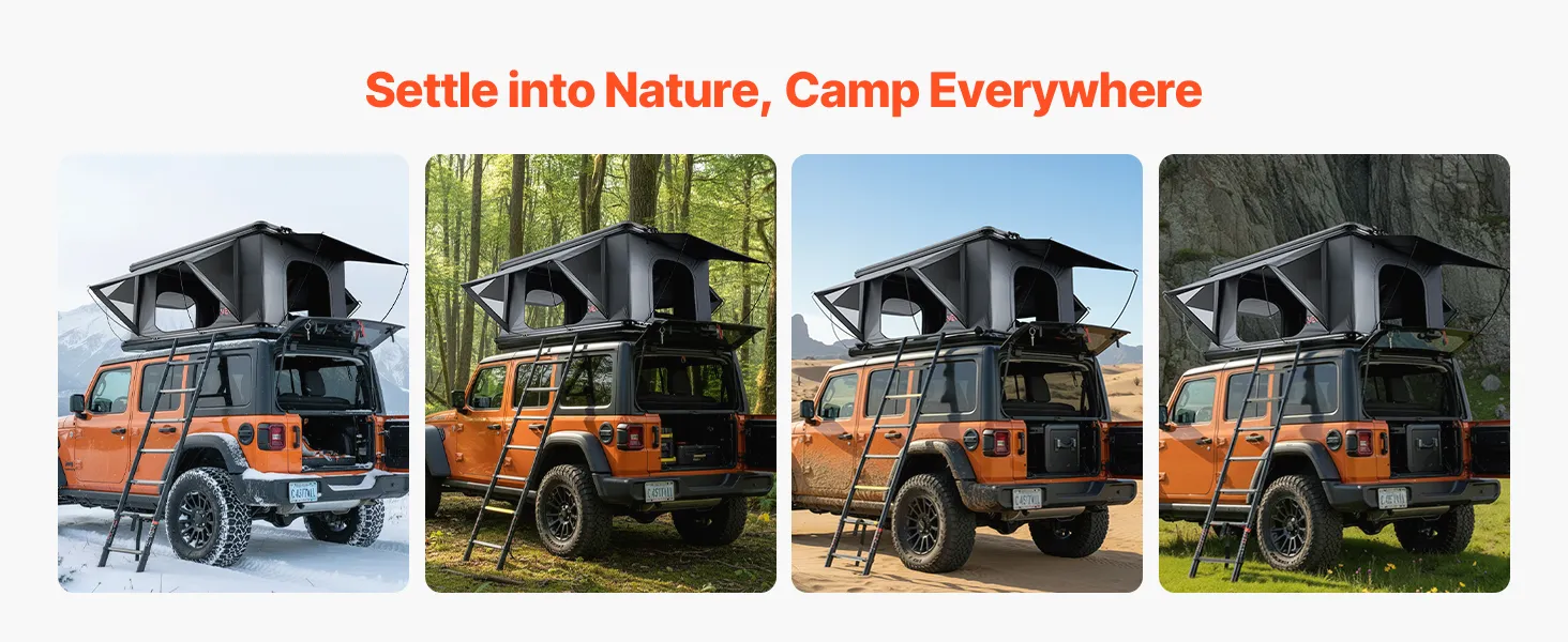 Secure 7.5 ft Telescopic Ladder: Accessing your roof rack tent is easy with the included telescopic aluminum ladder. Its 7-section design adjusts to different vehicle heights. With a load capacity of up to 330 lbs, it provides reliable support