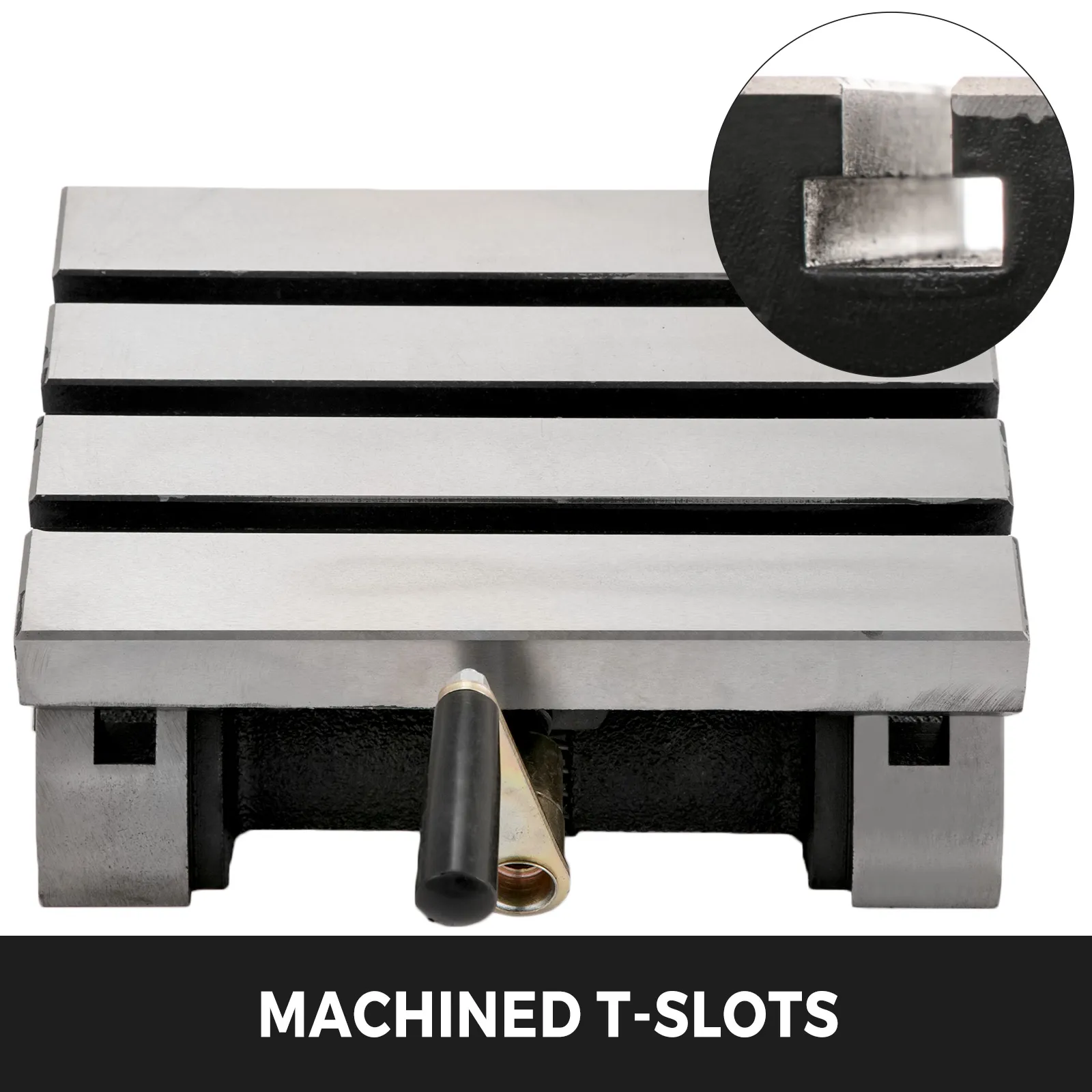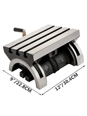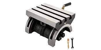 This tilting table for milling machine which made of heavy duty cast iron can be adjusted from 0-45 degrees (both sides), with 3 T-slots (16mm), a crank handle and presice ground finish, it is a perfect tool to improve your milling processing.