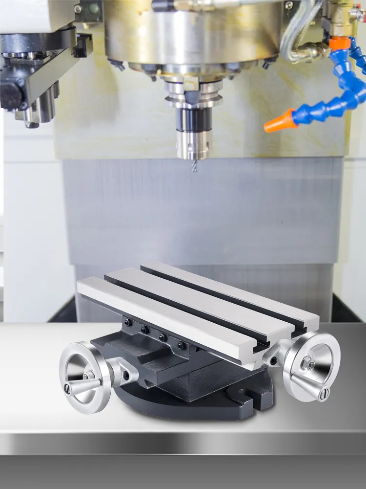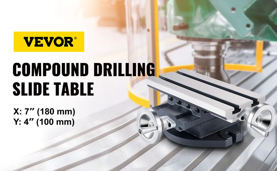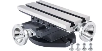 Our compound cross slide worktable is used in positioning, milling, drilling, microscope viewing, and staging; it's an excellent addition to many machine tools. This worktable is made of solid cast iron, equipped with handwheels and a dial. You can move or rotate the X and Y axes conveniently to meet your working requirements.