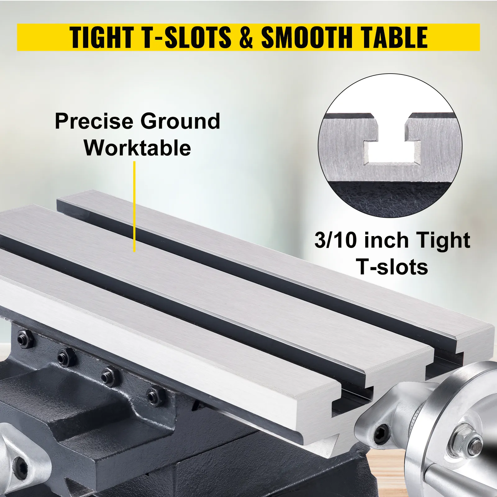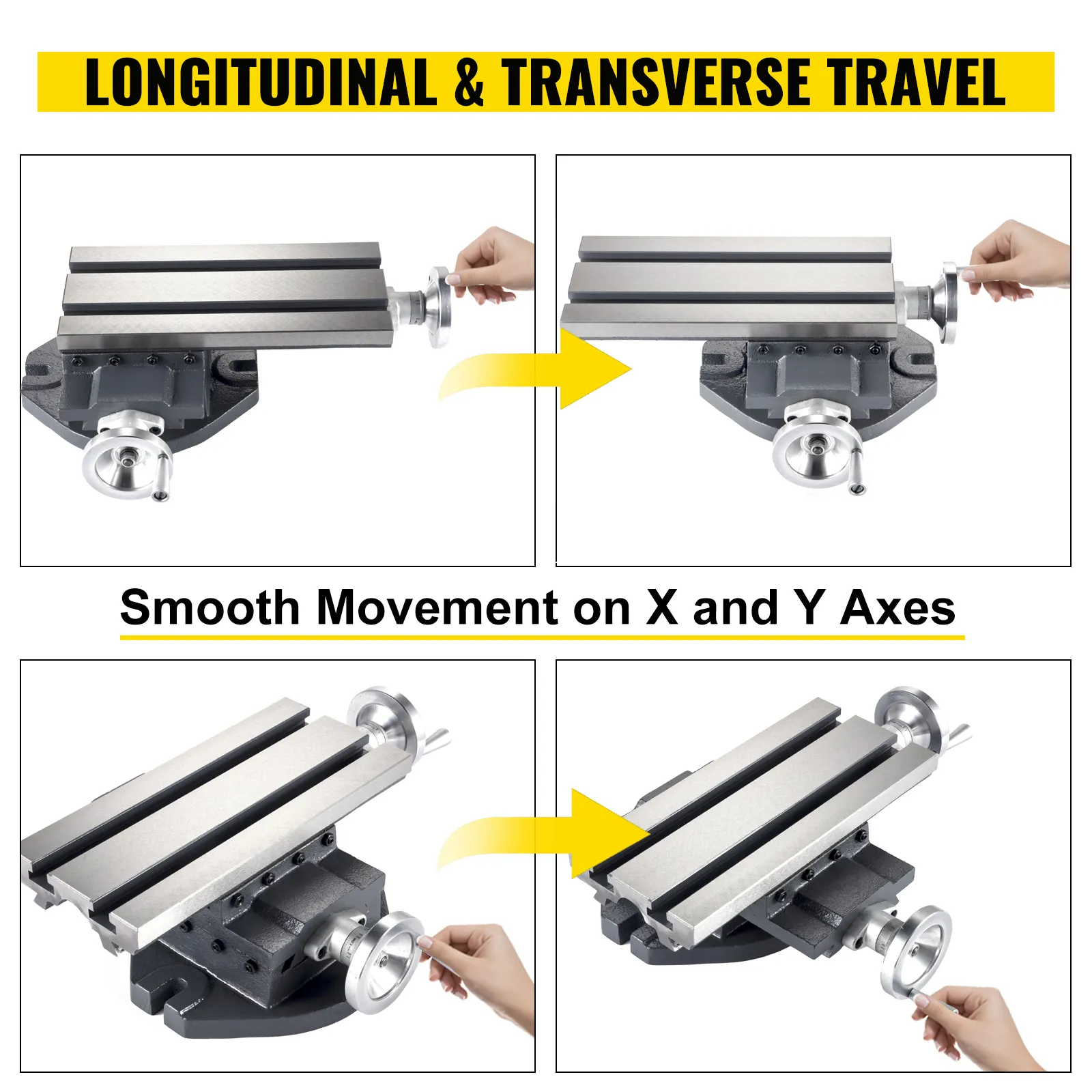 【SMOOTH XY MOVEMENT】 - Our milling machine worktable can move horizontally and vertically through the adjustment handles. The workbench vertical travel length is 180 mm/7", and the horizontal travel length is 4"/100 mm.