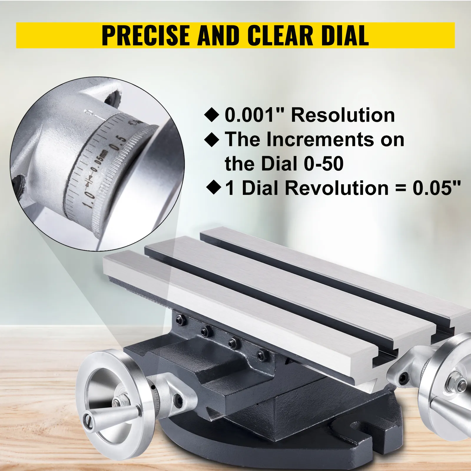 【0.001 INCH PRECISE DIAL】 - The dial accuracy is 0.001", and 0.1" per ring ensures accurate position. 300 mm x 140 mm/5-1/2" x 12" working area is large enough. 5/8" tight T-slots can meet different force requirements.
