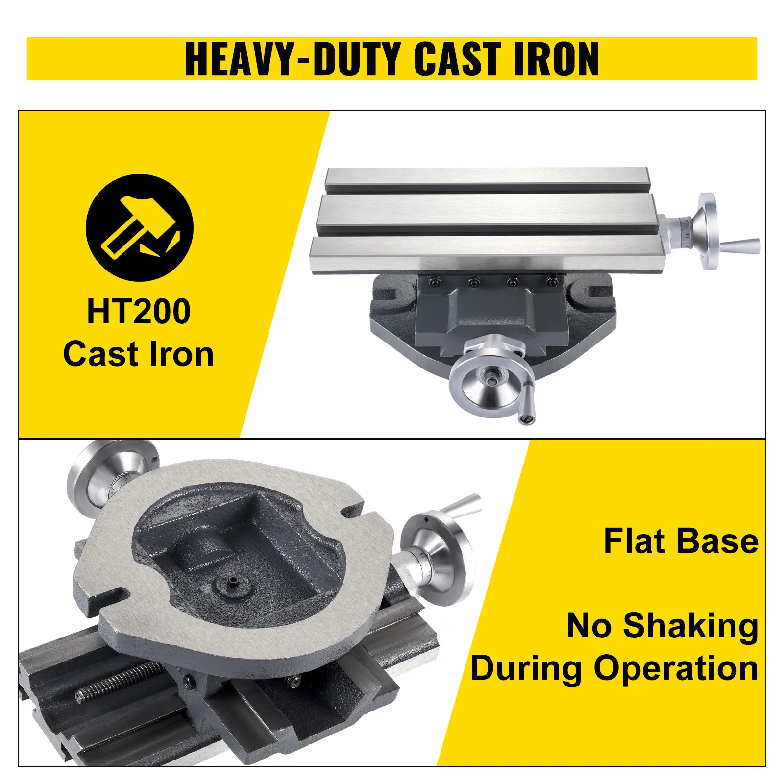【PREMIUM SURFACE AND T-SLOTS】- Our multifunction milling bench drill is made of heavy-duty HT200 cast iron, which is corrosion resistant and can withstand the harsh environment. The base is 200 mm x 230 mm/8" x 9" and is flat enough that no shaking during operation.