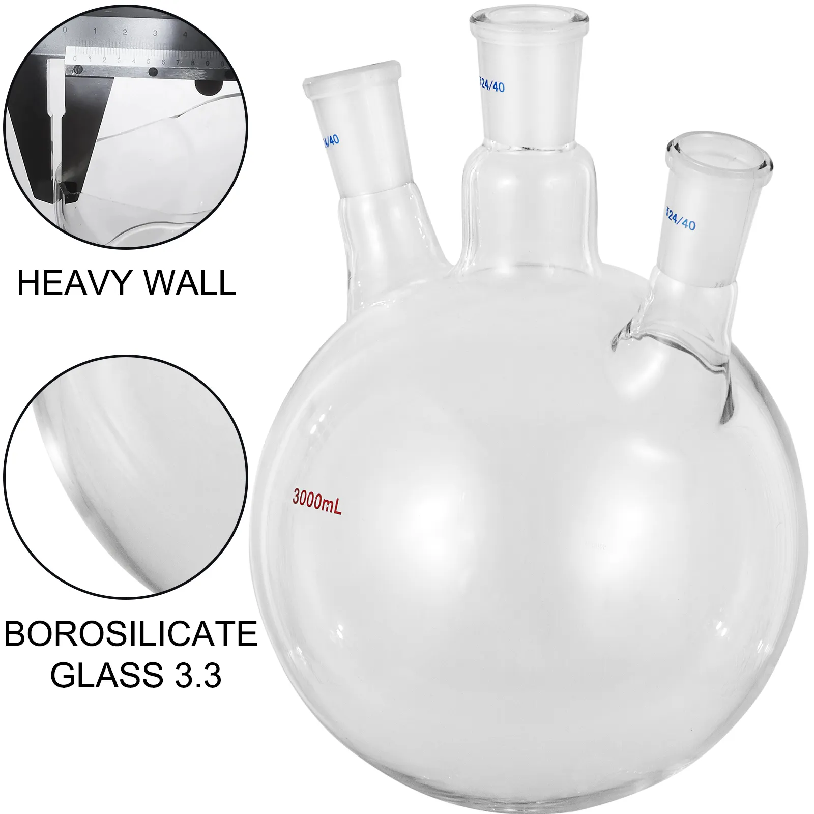 The flask is designed with three 24/40 standard taper joints, providing excellent sealing performance for their frosted inner surface.