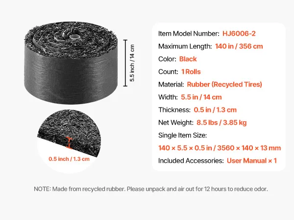 Upgraded Durable Construction: This 1-pack 140 x 5.5 in/3560 x 140 mm rubber mulch mat (0.5 in thick) is made from 100% recycled rubber fiber with green-energy adhesive. Wear-resistant, weatherproof, and reinforced with backing to avoid tearing. No special maintenance required