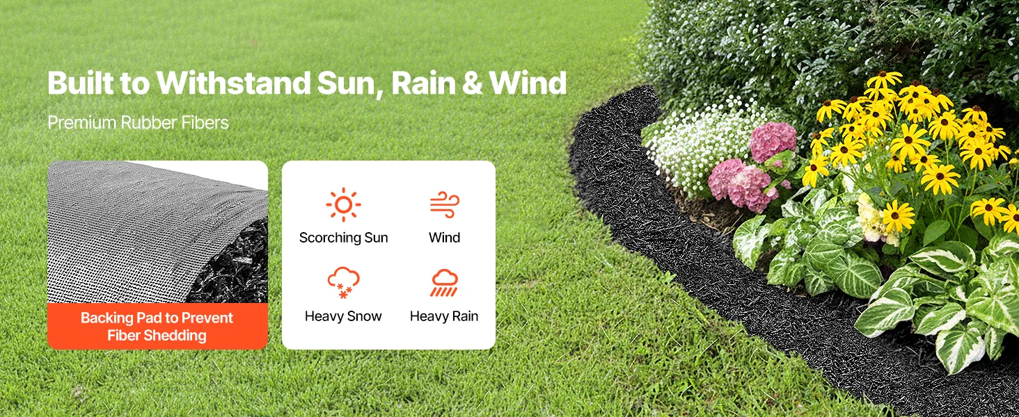 Upgraded durable construction resists tearing and loosening. Our rubber mulch mat roll is designed to withstand sun, rain, wind, and snow, providing reliable outdoor performance year-round.