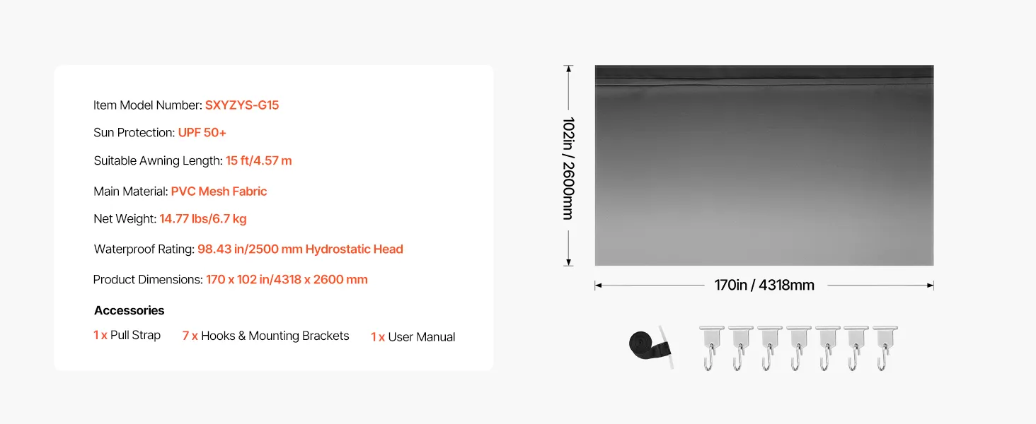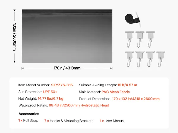 Complete Accessories: Our RV awning replacement fabric includes pull straps and brackets for easy setup without extra purchases, reinforcing support points for a secure, ready-to-use shaded space
