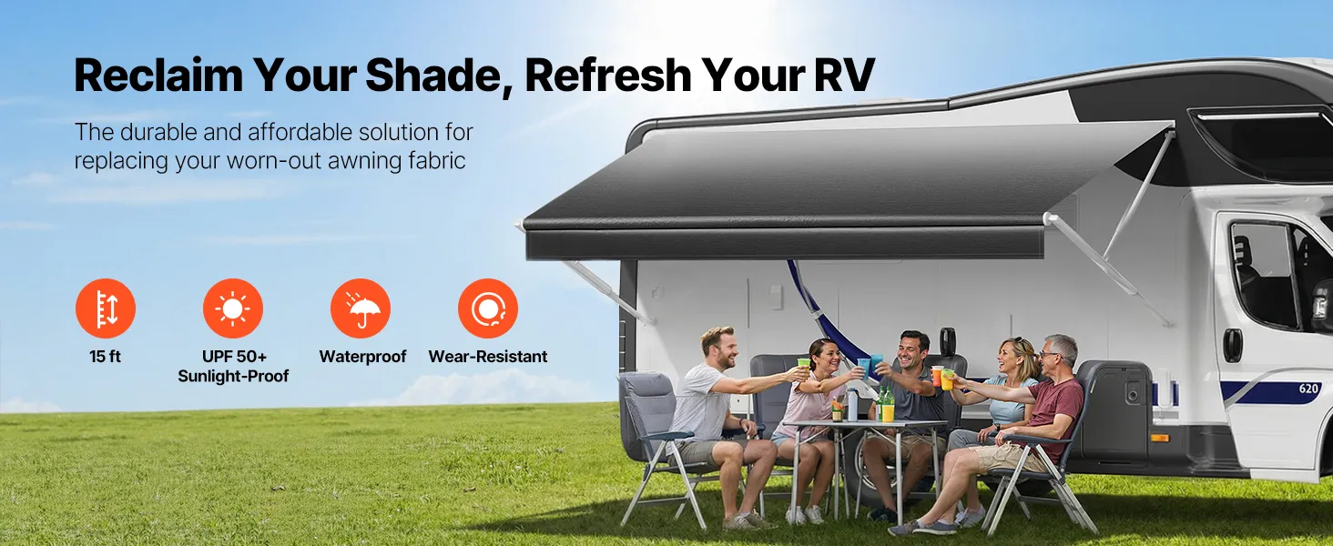Made from professional sun and rain-resistant material, this durable RV awning fabric replacement resists wear, cracking, and aging, ensuring year-round protection and lasting outdoor comfort.