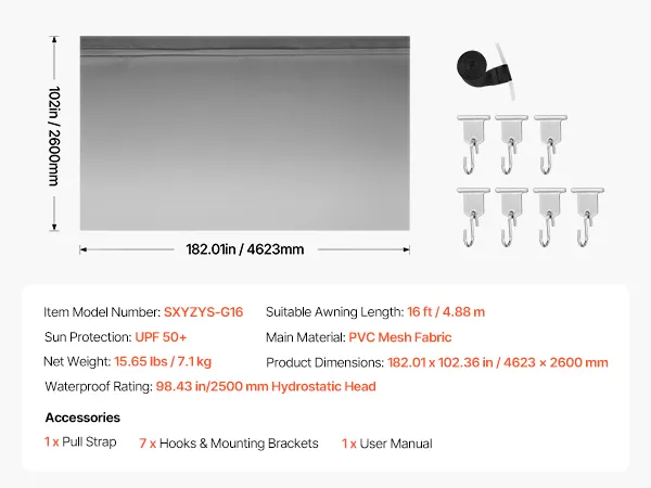 UPF 50+ & Waterproof: This RV awning fabric replacement blocks 98% of harmful sunlight and withstands up to 98.43 in (2500 mm) hydrostatic head. It keeps your RV dry and cool in rain or intense sun while resisting dampness