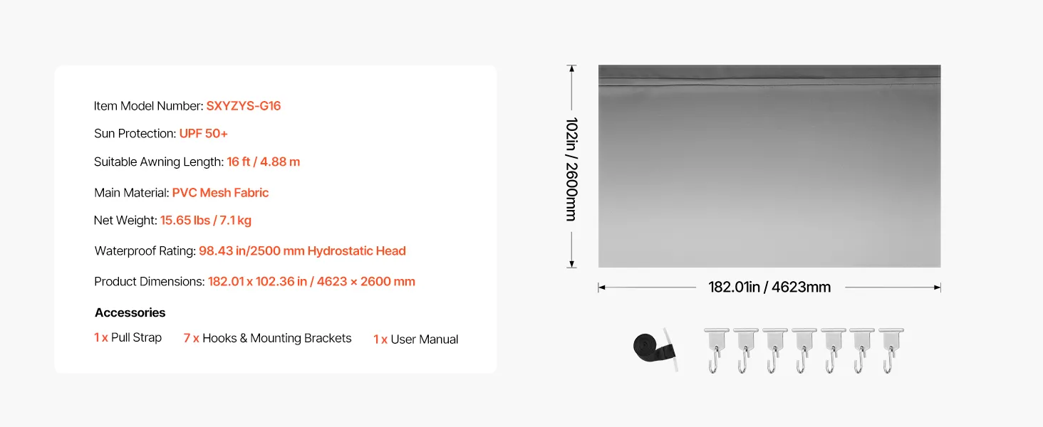 18 oz Heavy-Duty Fabric: Crafted from 4-layer high-density 18 oz/㎡ (510 g/㎡) PVC mesh, this replacement RV awning fabric withstands strong winds, tears, and wear. Double stitching and heat-sealed seams deliver lasting performance for outdoor use