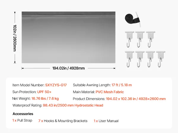 • UPF 50+ & Waterproof: This RV awning fabric replacement blocks 98% of harmful sunlight and withstands up to 98.43 in (2500 mm) hydrostatic head. It keeps your RV dry and cool in rain or intense sun while resisting dampness