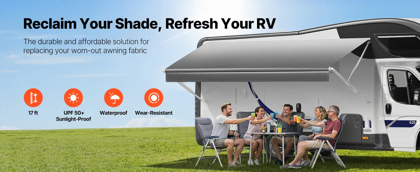 VEVOR RV Awning Fabric Replacement, 5.18 m (Fabric 4.9 m) 510 g Heavy-Duty Weatherproof Vinyl Camper Awning Replacement, UPF50+ Protection Waterproof Outdoor Canopy for RV Motorhome Trailer, Gray Fade VEVOR RV Awning Fabric Replacement, 5.18 m (Fabric 4.9 m) 510 g Heavy-Duty Weatherproof Vinyl Camper Awning Replacement, UPF50+ Protection Waterproof Outdoor Canopy for RV Motorhome Trailer, Gray Fade