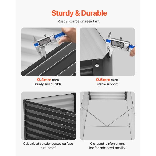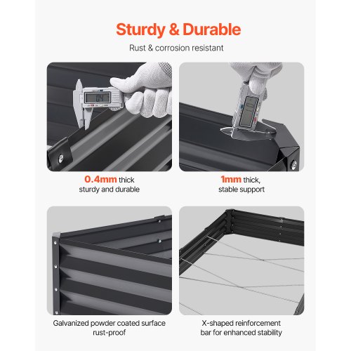 VEVOR Raised Garden Bed, 8 x 4 x 2 ft Galvanized Metal Planter Box, Outdoor Planting Boxes with Open Base, for Growing Flowers/Vegetables/Herbs in Backyard/Garden/Patio/Balcony, Dark Gray
