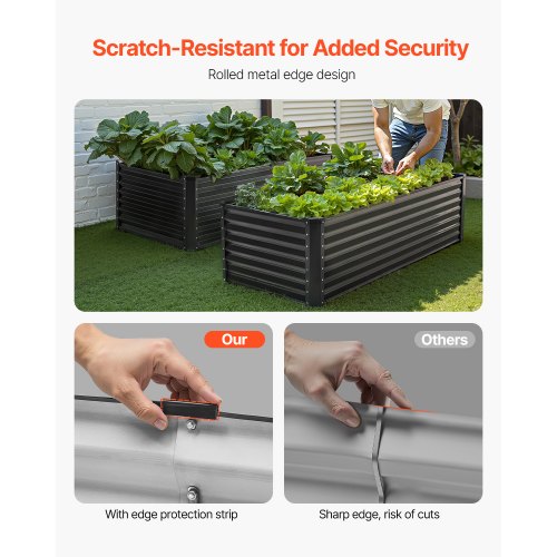 VEVOR Metal Raised Garden Bed, 6 x 3 x 1.5 ft Outdoor Galvanized Planter Box, with Open Bottom, Large Planter Raised Bed for Gardening Vegetables, Flowers, Herbs, and Succulent Plants, Dark Gray