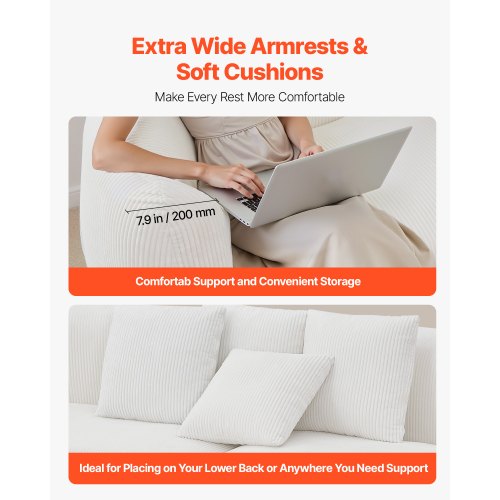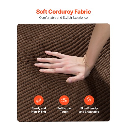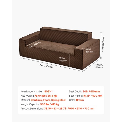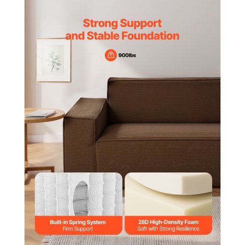 VEVOR 2110 mm Modern Sofa, Comfy Corduroy Couch with Deep Seats, Cloud Sofa with Wide Armrests, No Assembly Required, Large Plush Couch Ideal for Living Room, Bedroom, Apartment and Office, Brown