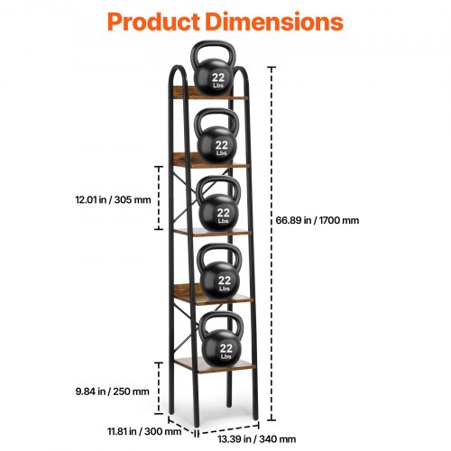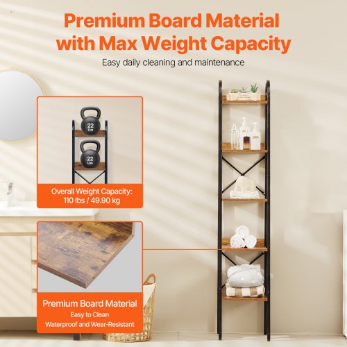 VEVOR Metal Bookshelf, 5-Tier Industrial Bookcase, Tall Wide Rustic Vintage Storage Bookshelf with Open Shelves, Freestanding Display Shelving Unit Storage Rack, for Living room, Bedroom & Office
