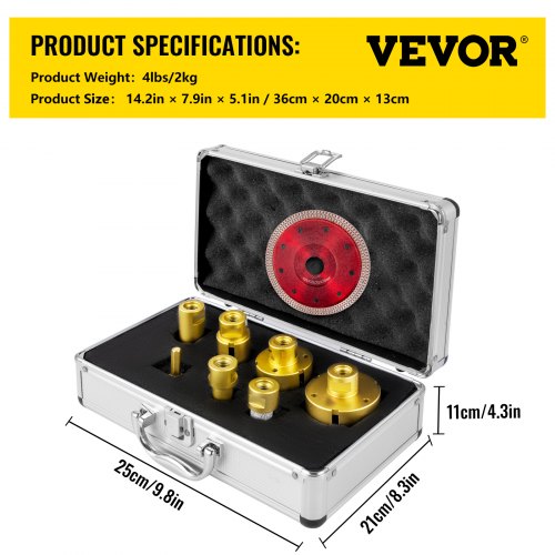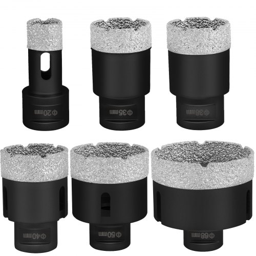 VEVOR 6PCS Diamond Hole Saw Set, Diamond Drill Core Bits with Saw Blade, Heavy Duty Hole Saw Arbor 20/25/40/45/50/68 mm M14 Thread Carborundum Granite for Glass, Ceramics, Porcelain, Ceramic Tile