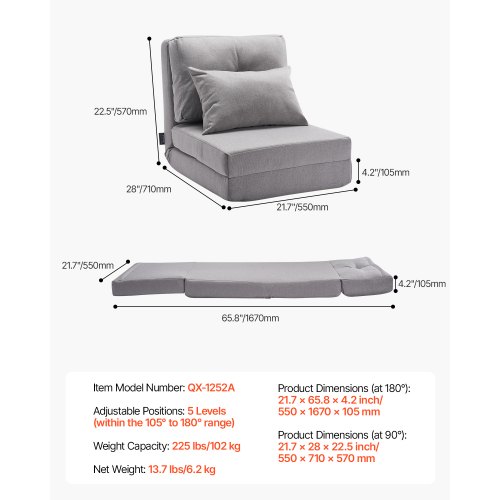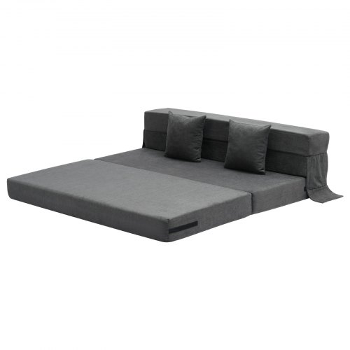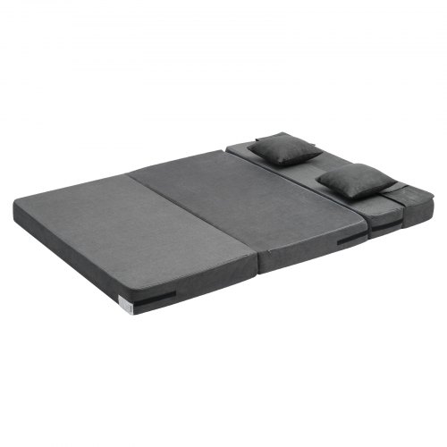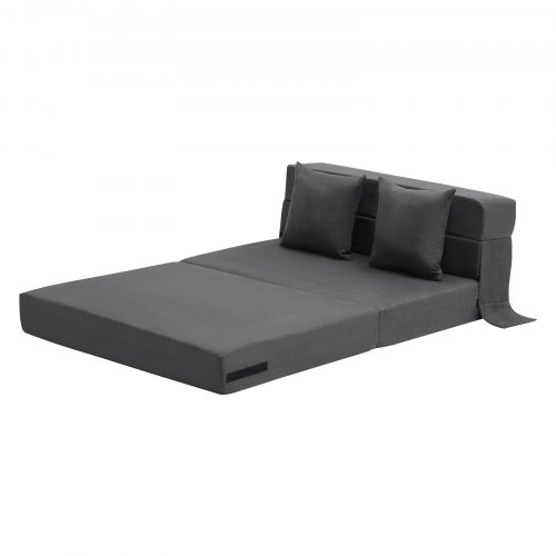 VEVOR Folding Sofa Bed, 3-in-1 Foldable Couch Bed with 2 Pillows and Washable Cover, 25D High Density Memory Foam Convertible Sleeper Chair Bed, Futon Couch for Living Room, Bedroom, Dark Grey(Queen)