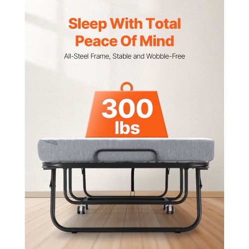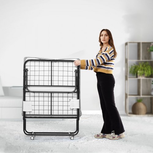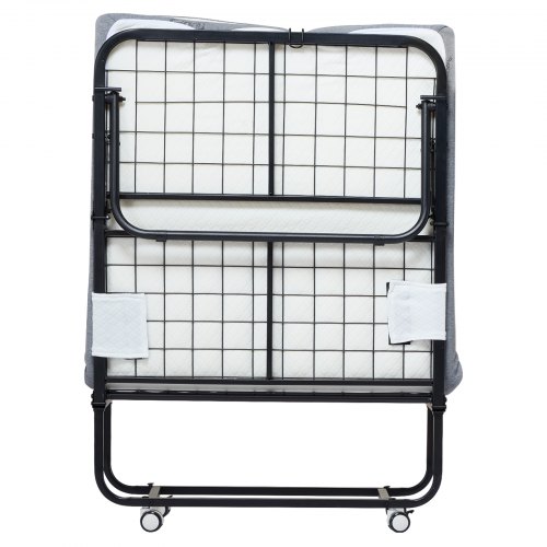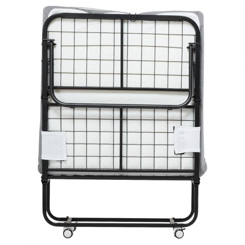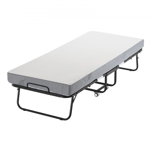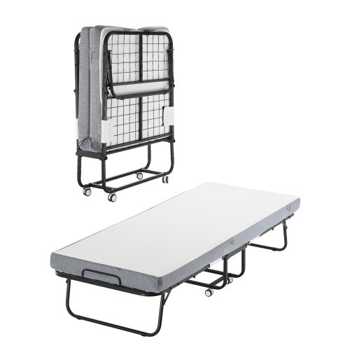 VEVOR Rollaway Bed, 96.5 cm x 190 cm Folding Bed with 10 cm Mattress, Twin Size Foldable Bed with Sturdy Metal Frame & Memory Foam Mattress, Portable Roll Away Bed with Mattress, for Adults, Guest