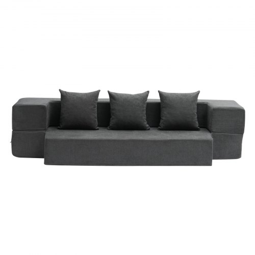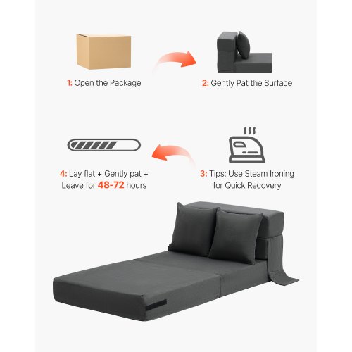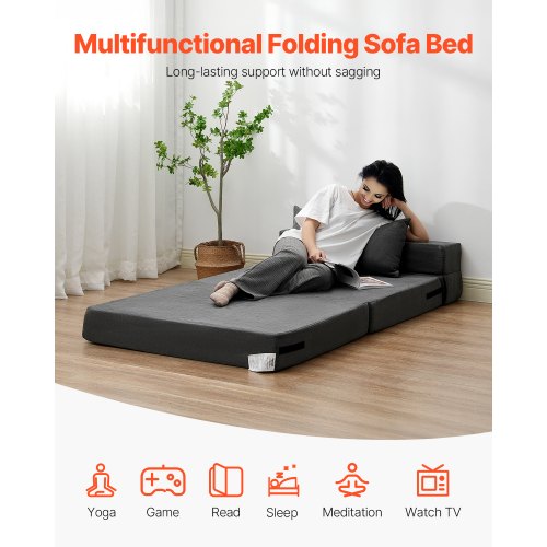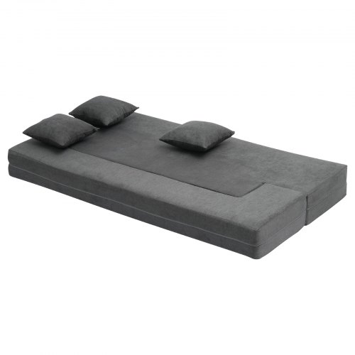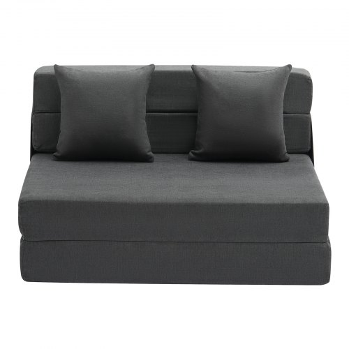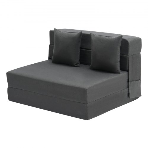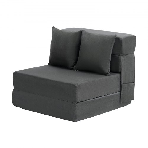 VEVOR Folding Sofa Bed, 3-in-1 Foldable Couch Bed with 2 Pillows and Washable Cover, 25D High Density Memory Foam Convertible Sleeper Chair Bed, Futon Couch for Living Room, Bedroom, Dark Grey(Twin)