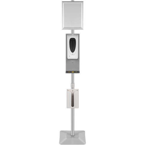 VEVOR Automatic Hand Dispenser with Stand, Infrared Sensing Sanitizing Station with Signboard & Tissue Box, 1000 mL Hand Sanitizer Dispenser, 55''-63'' H Hand Sanitizer Stand for Home & Public Areas
