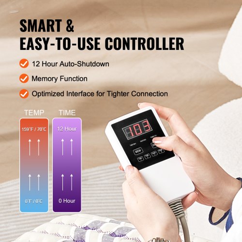 VEVOR Far Infrared Heating Pad, Amethyst Gemstones Heating Mat with Negative Ions, 103-159℉ Hot Gemstone Therapy Mat with 0-12 Hours Timer for Back Hip Pain Relief (18 x 18-inch)