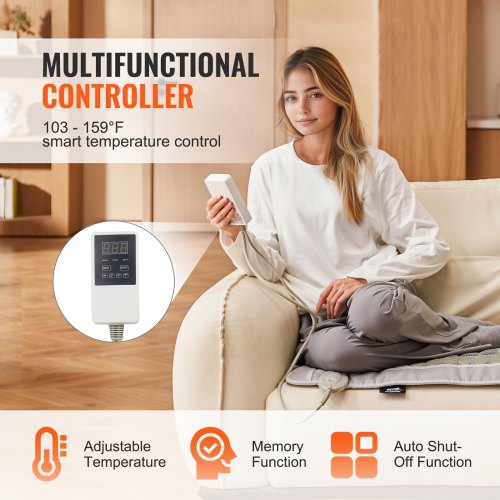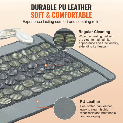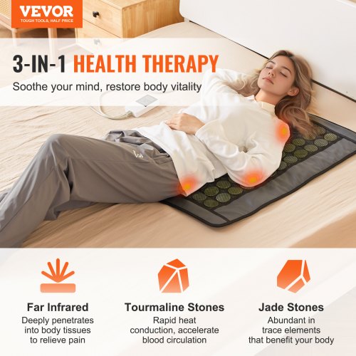 VEVOR Far Infrared Heating Pad, 48 Natural Jade & 24 Tourmaline Stone Heating Pad for Back Pain Relief, 103-159 ℉ Infrared Heating Pad with Smart Controller & Auto Shut Off (Medium Size 31.7" x 22")
